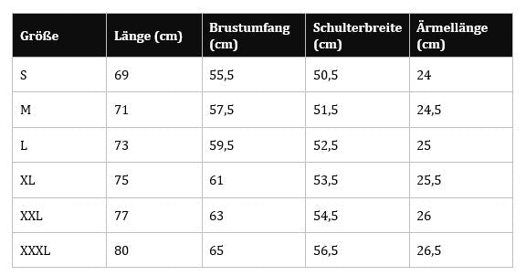 Unsere Größentabelle findest du auf jeder Produktseite ganz unten beim letzten Bild.