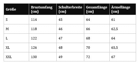 Unsere Größentabelle findest du auf jeder Produktseite ganz unten beim letzten Bild.